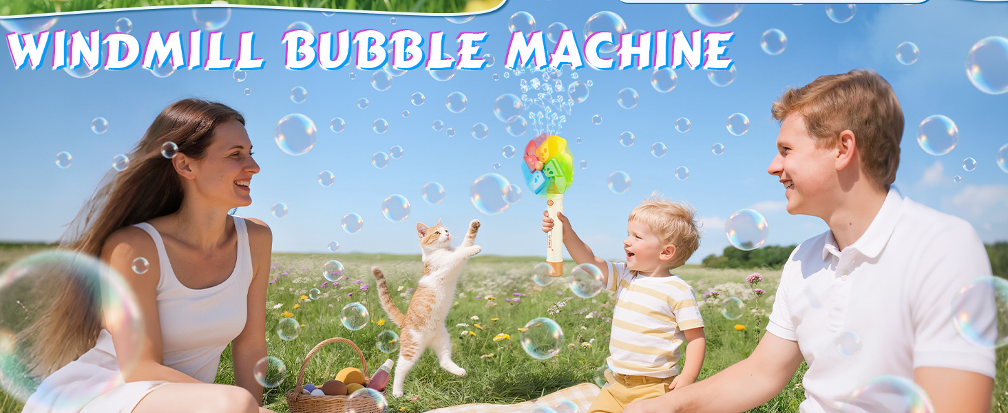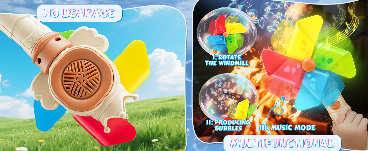 • 【Unique Windmill Design】Eye-catching windmill shape spins while blowing bubbles, making activity time more exciting and visually fun