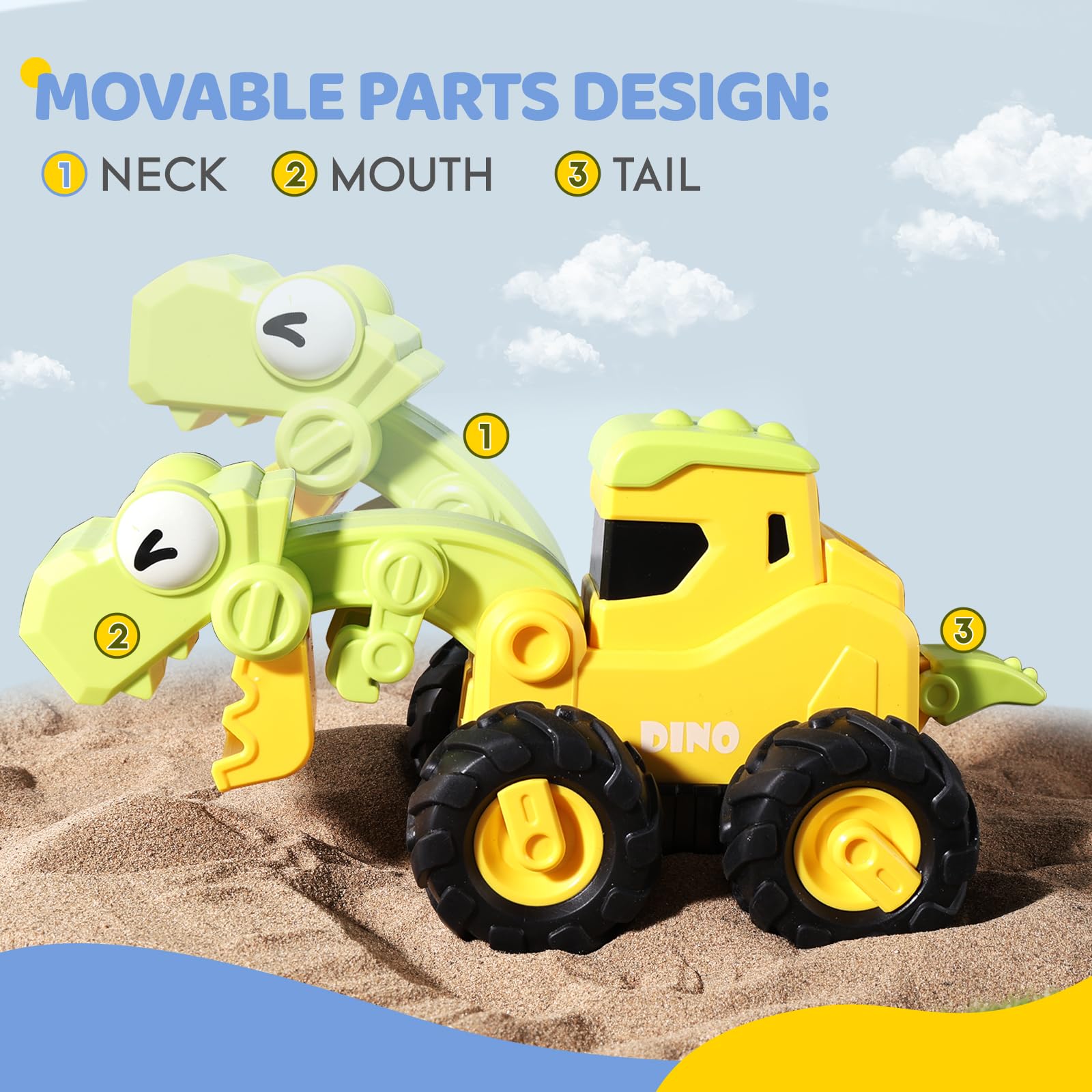 Construction Monster Truck Toys for Ages 2-4, Outdoor Dinosaur Car Toys for Kids 3-5, 4-6, Sand Toys for Toddlers 2-3 Year Old Boy Birthday Gift
