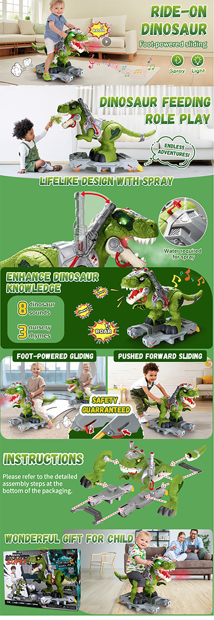 - The Ultimate Gift for Little Adventurers: Whether for birthdays, Christmas, or Children’s Day, this dinosaur ride-on is a surefire hit for boys and girls alike. Watch their faces light up as they become dinosaur trainers, explorers, or paleontologists—all while developing motor skills and imaginative play