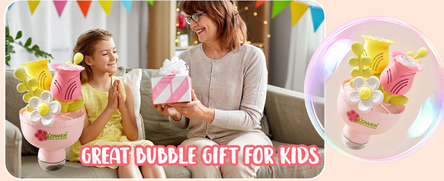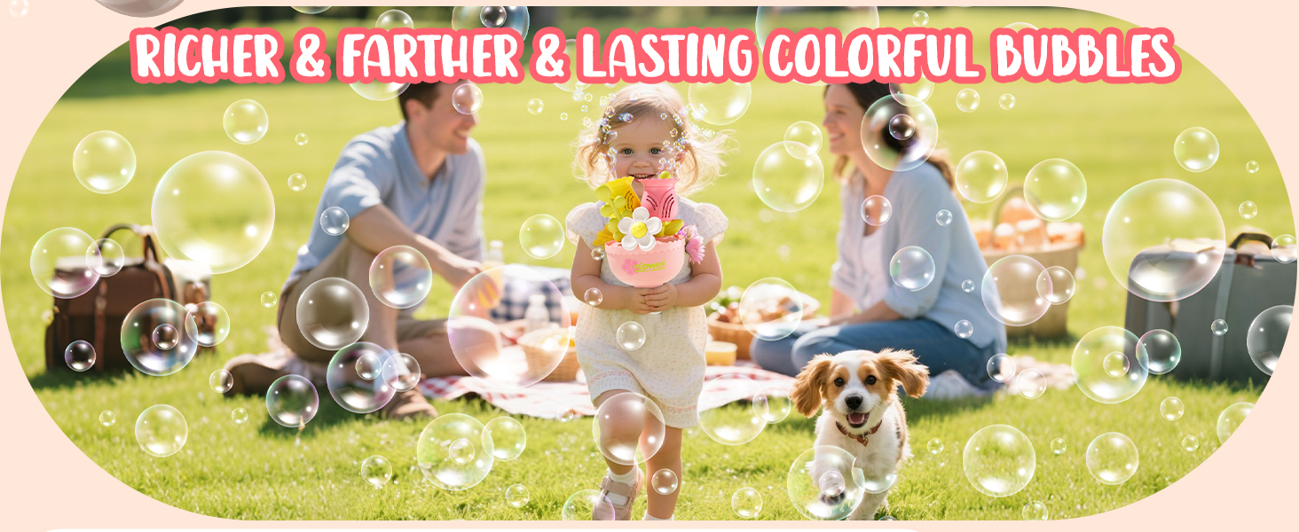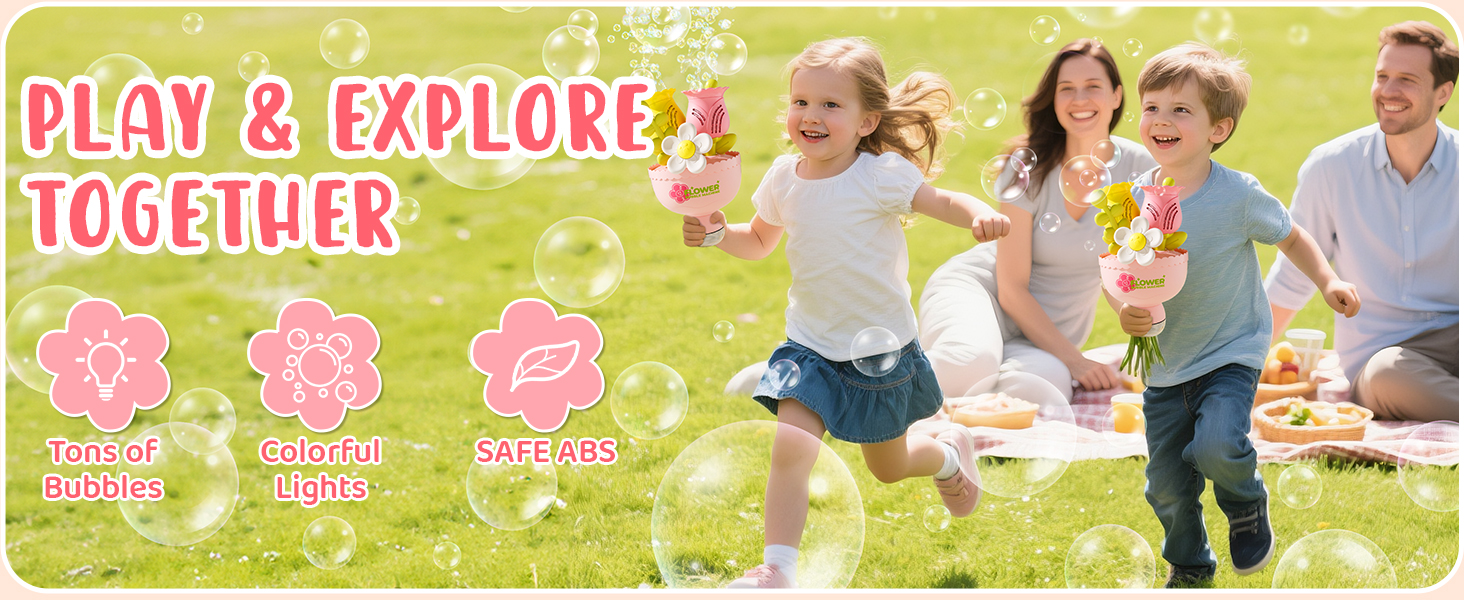 - 【Automatic Bubble Fun】No need to dip or blow—this automatic flower bubble machine creates thousands of colorful bubbles in seconds, ideal for outdoor play and kids’ activities