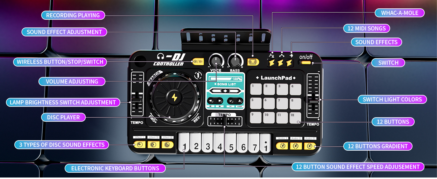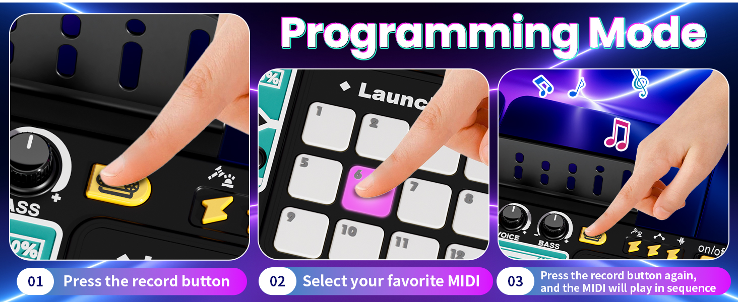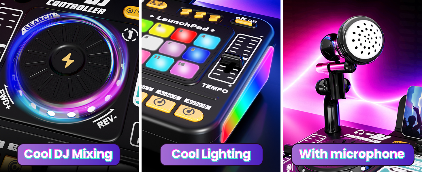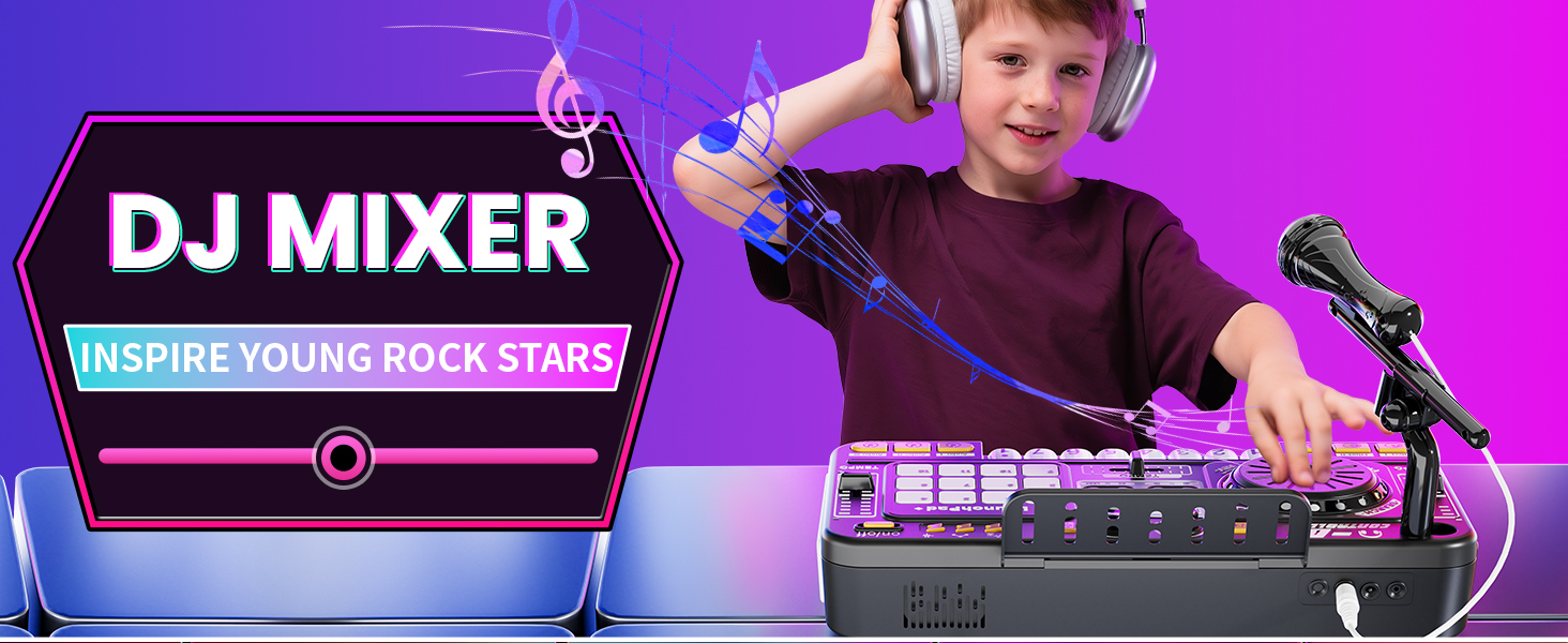 - 【Build, Mix & Perform Like a DJ】This DJ set for beginners lets kids create music with 12 MIDI effects, remix rhythms, and use the built-in recording and programming modes. Whether playing solo or hosting a show, it encourages musical exploration and skill-building through hands-on play