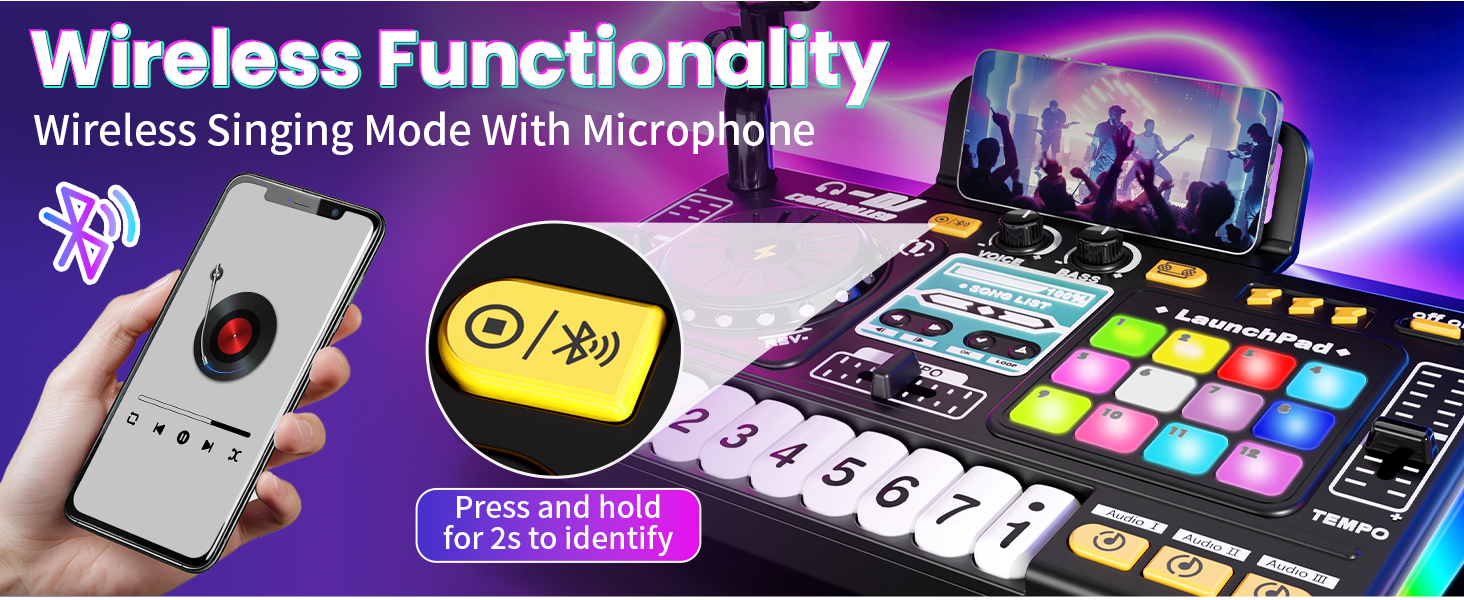 - 【Karaoke Fun】Play songs and sing along. The included mic and phone holder allow kids to perform live or pretend they’re on stage in front of a crowd