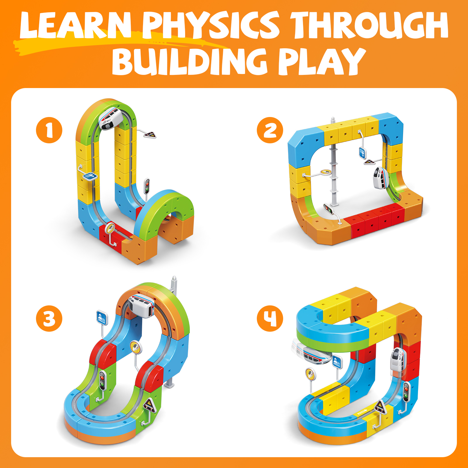 - STEM Learning Benefits: It develops spatial reasoning, problem-solving skills and creativity as children design and build their own unique track setups